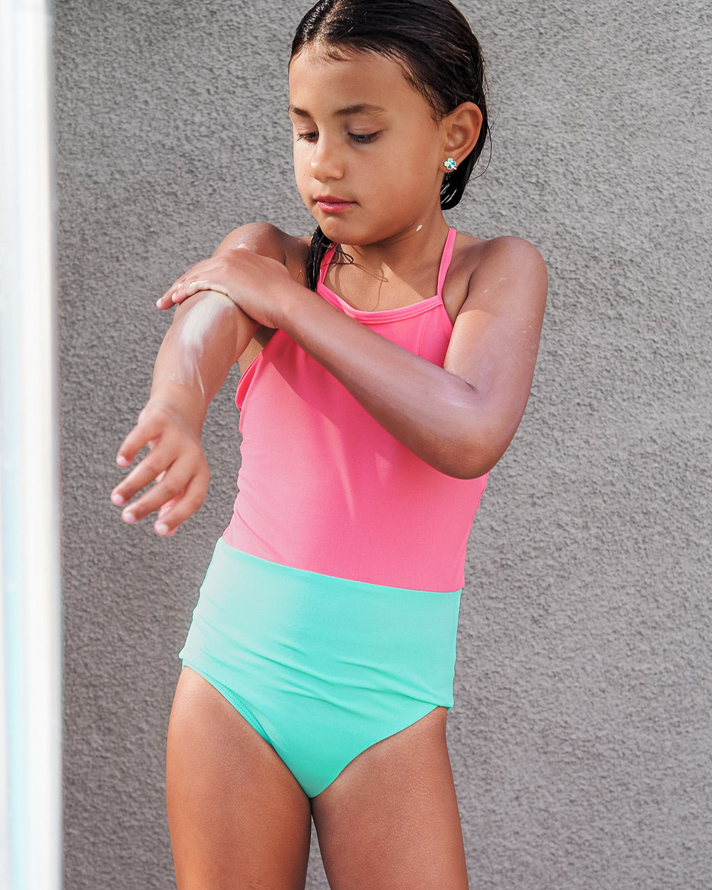 Die Schulterträger unseres Lena Mädchen Badeanzugs werden am Rücken geknotet. Dies verspricht eine perfekte Passform. Der Stoff ist qualitativ hochwertig, weich, schnell trocknend und sehr angenehm auf der Haut.