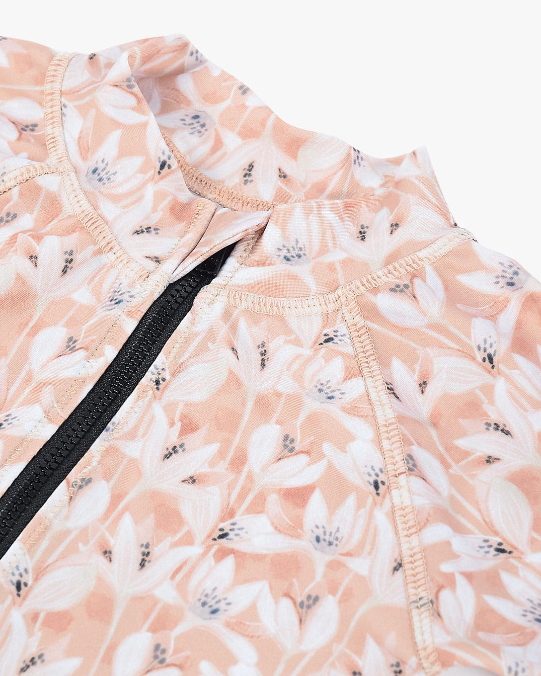 Schütze die empfindliche Kinderhaut mit diesem Ganzkörper Badeanzug mit UPF 50+ Sonnenschutzfaktor. Der Badeanzug ist langärmlig und hat einen Stehkragen für extra Sonnenschutz am Hals und Nacken. Der Reissverschluss erleichtert das An- und Ausziehen des Anzugs.