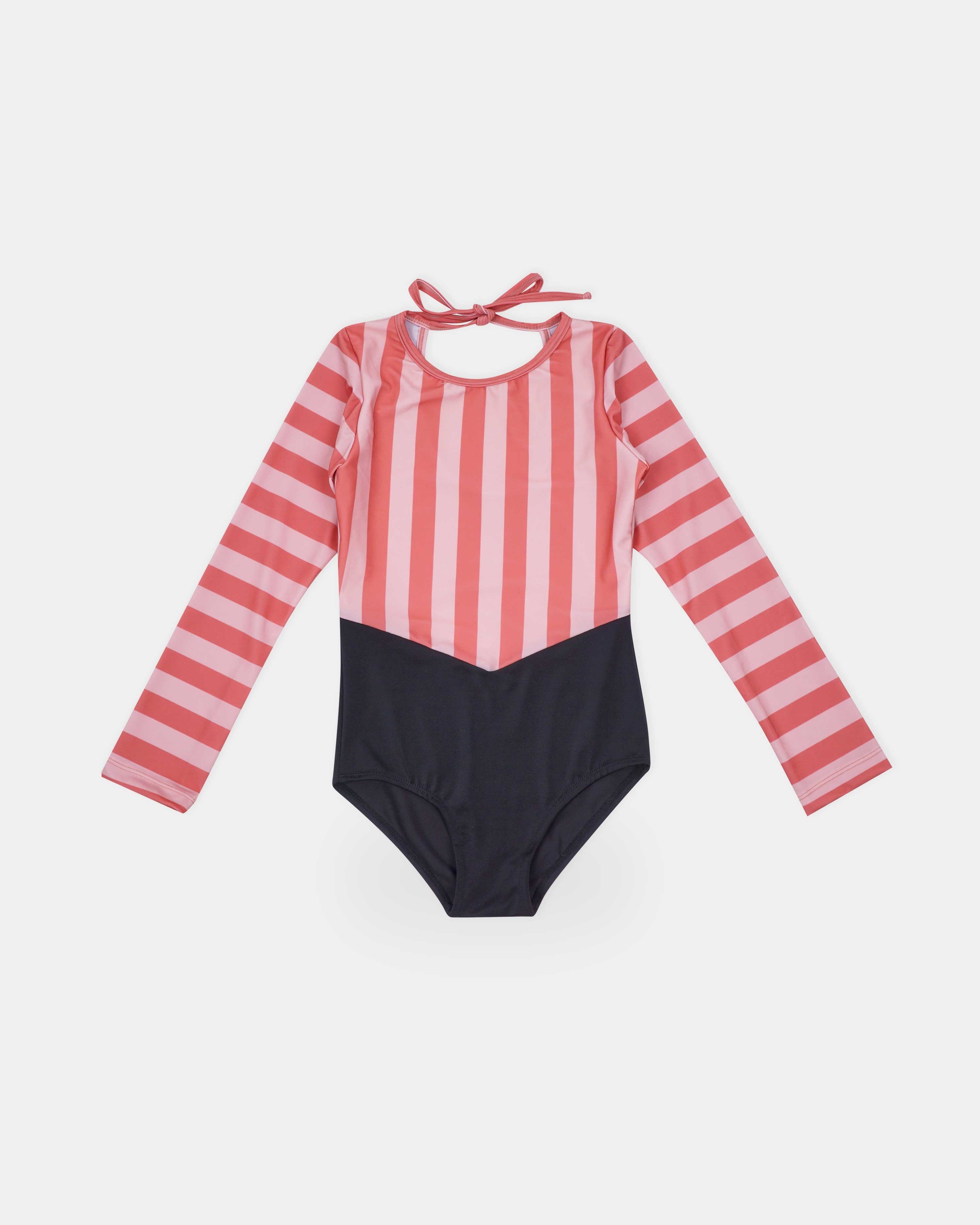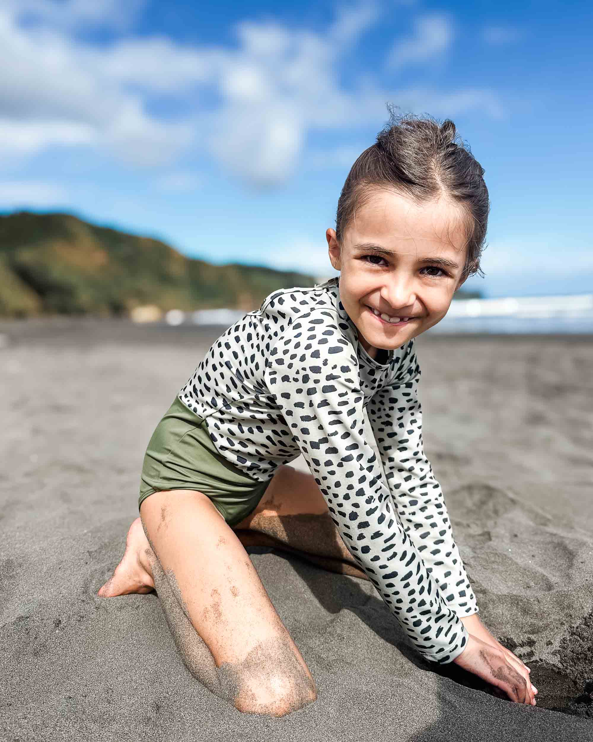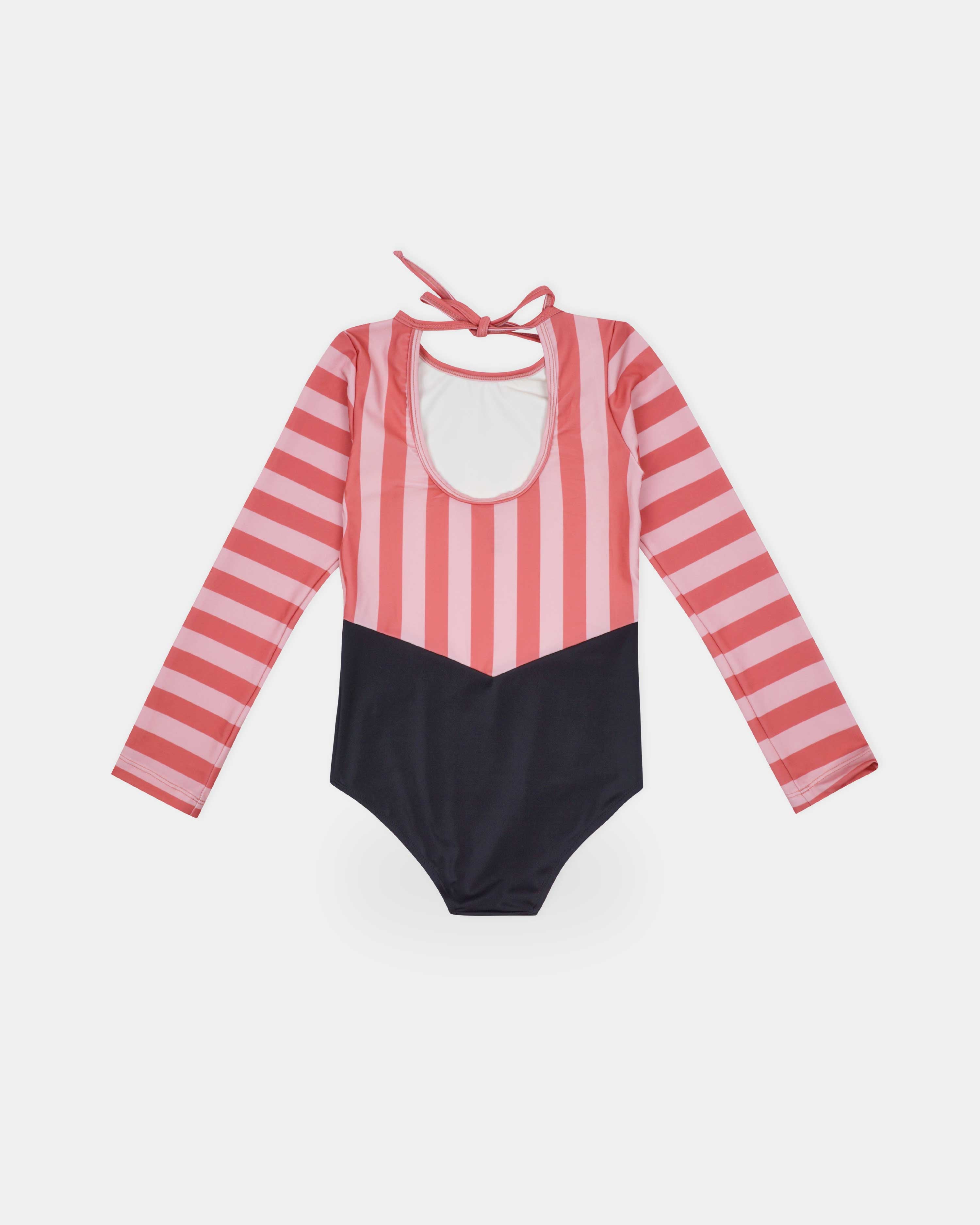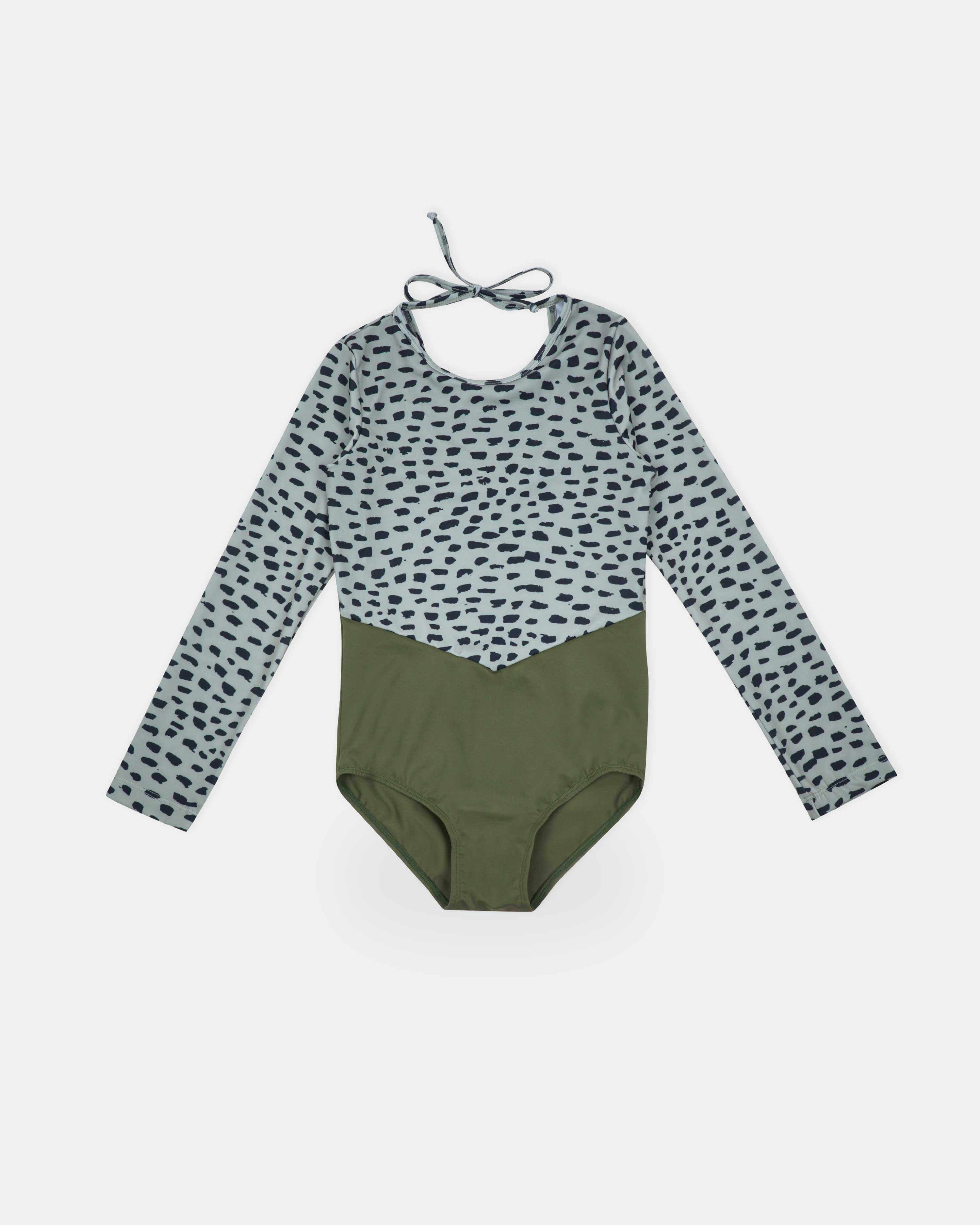 Der Kaia Mädchen Badeanzug ist gemacht für aktive Tage in der Sonne – leicht, bequem und unkompliziert. Die langen Ärmel schützen die empfindliche Haut zuverlässig, während das weiche, schnelltrocknende Material angenehm auf der Haut liegt und jede Bewegung mitmacht. Durch den offenen Rücken und die verstellbaren Bänder lässt sich der Badeanzug ganz einfach an- und ausziehen und individuell anpassen, sodass er immer gut sitzt, ohne einzuengen. Das luftige, leichte Design sorgt für Bewegungsfreiheit – ob beim Schwimmen, Surfen oder Spielen am Strand. Gleichzeitig gibt der integrierte UPF 50+ Schutz dir ein gutes Gefühl, auch an langen Sonnentagen.