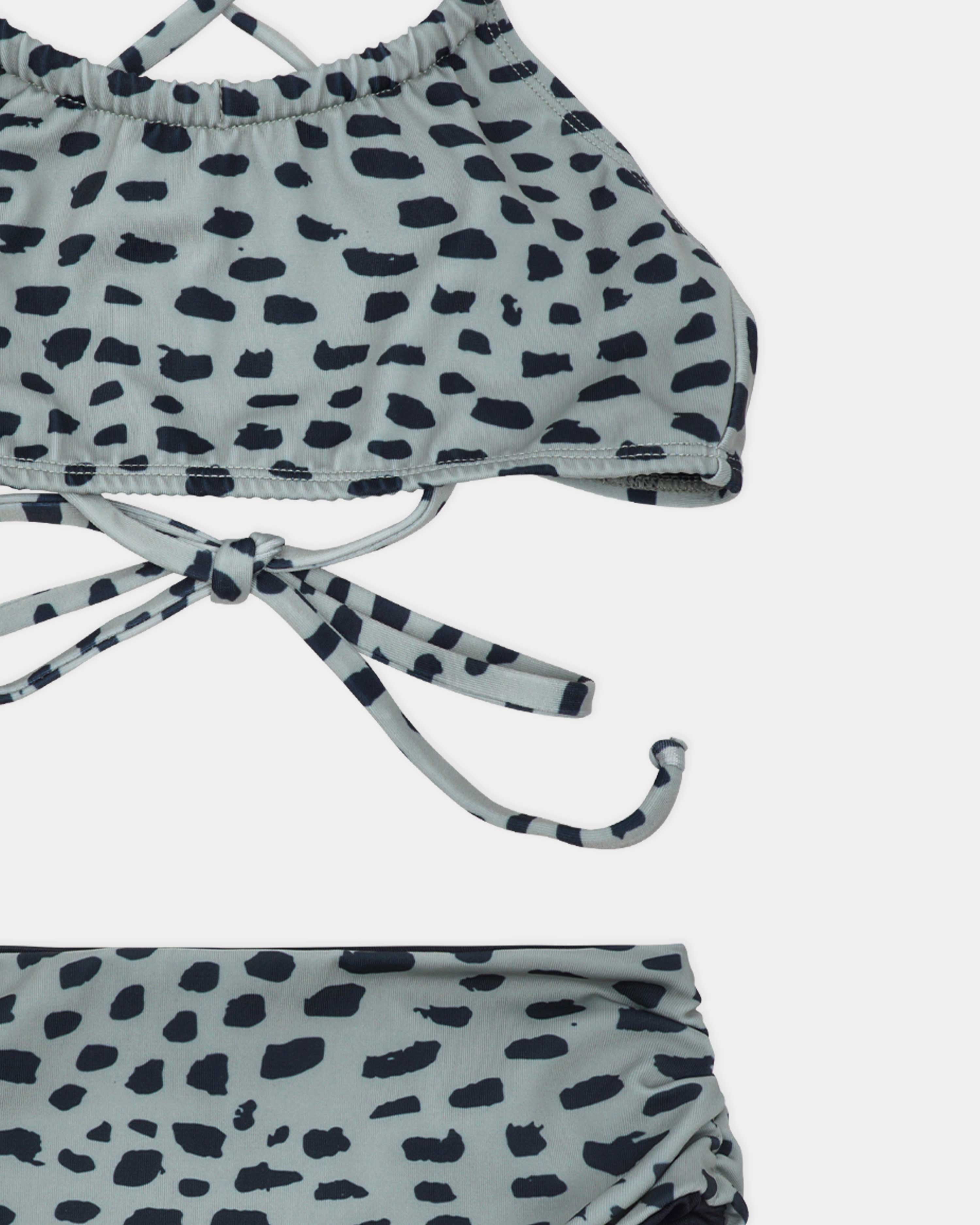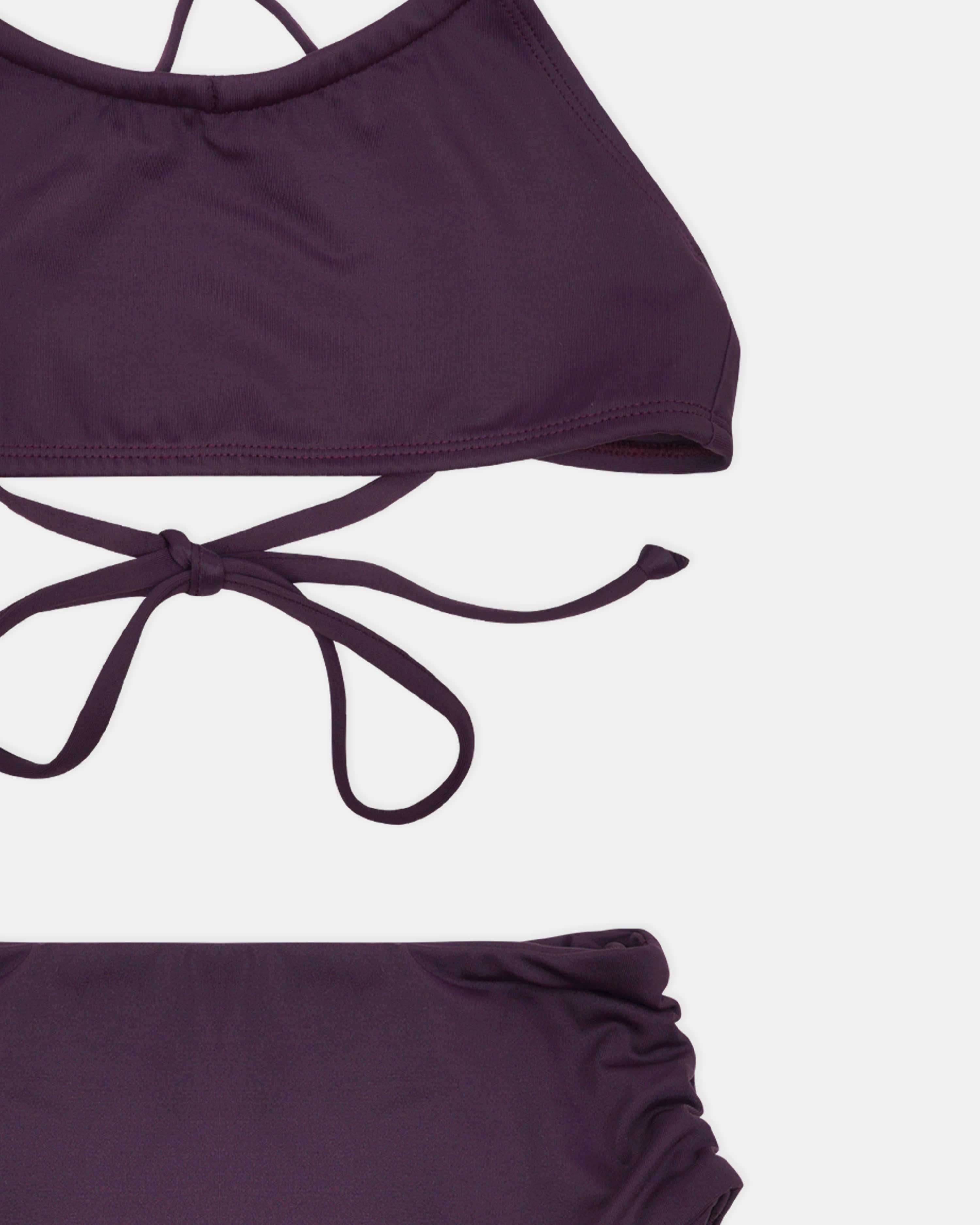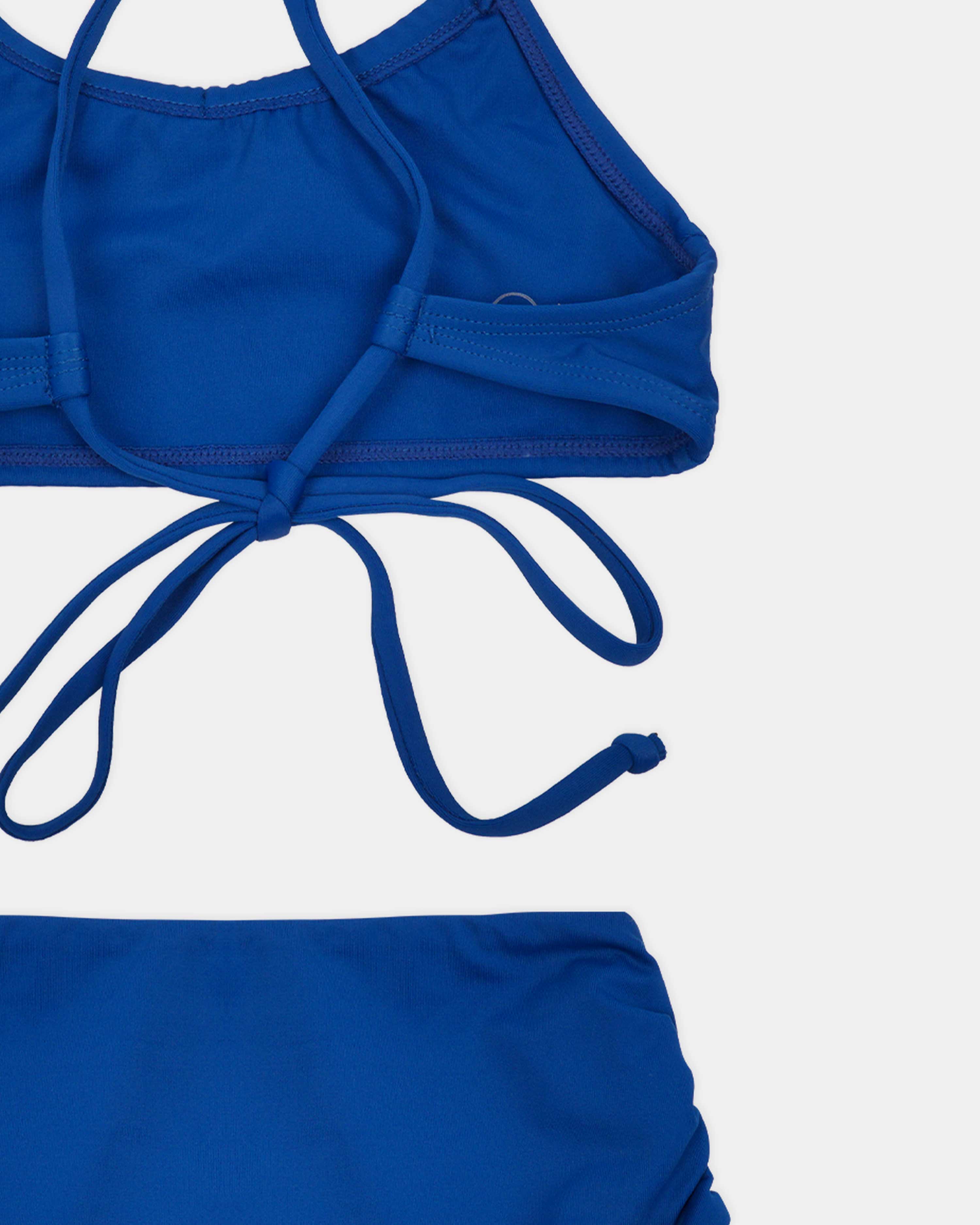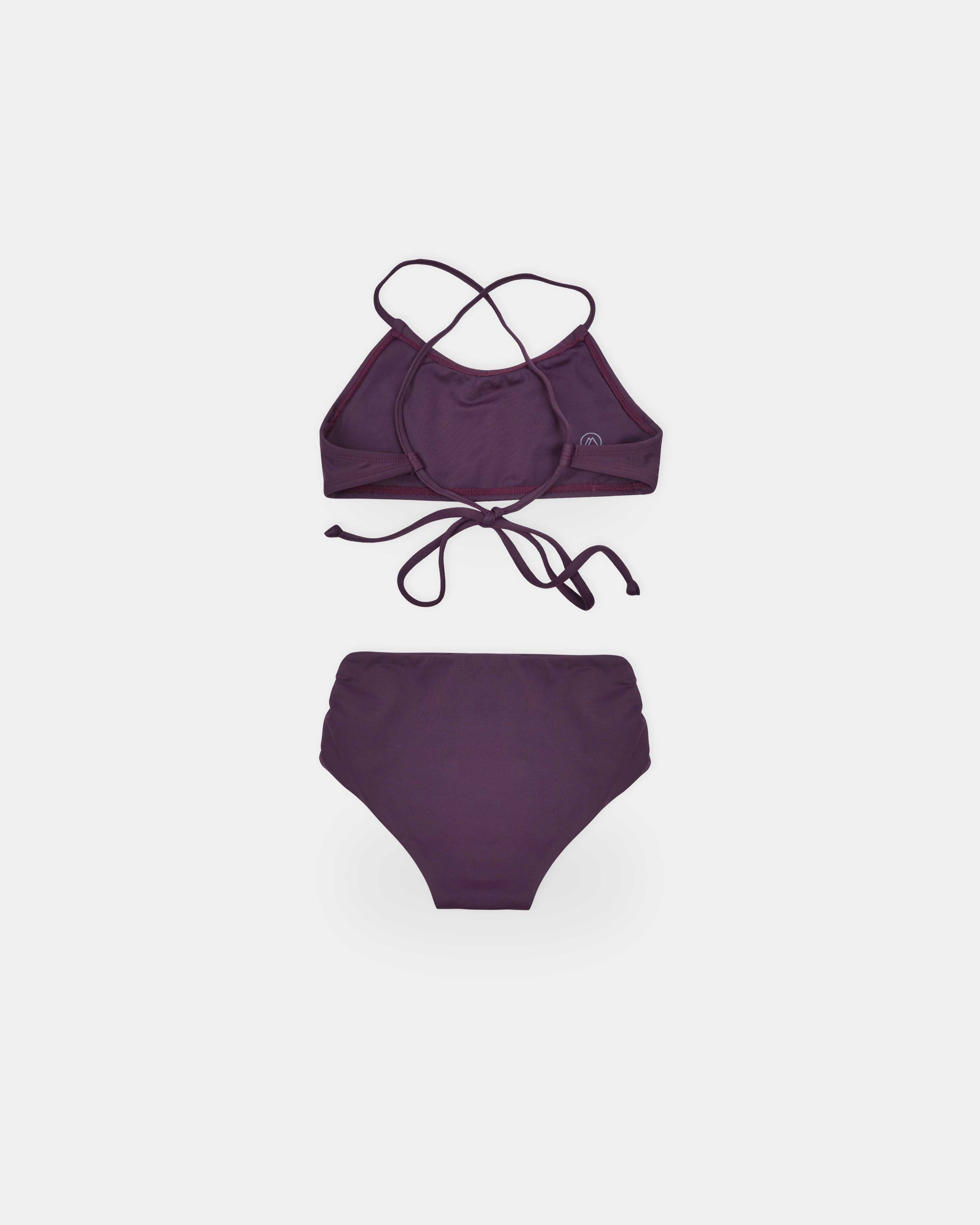 Der Nalu Mädchen Bikini hat verstellbare Träger und Raffungen für optimalen Halt und Komfort. Der weiche Stoff ist aus recycelten Materialien hergestellt und mit UPF50+ Sonnenschutz ausgestattet.