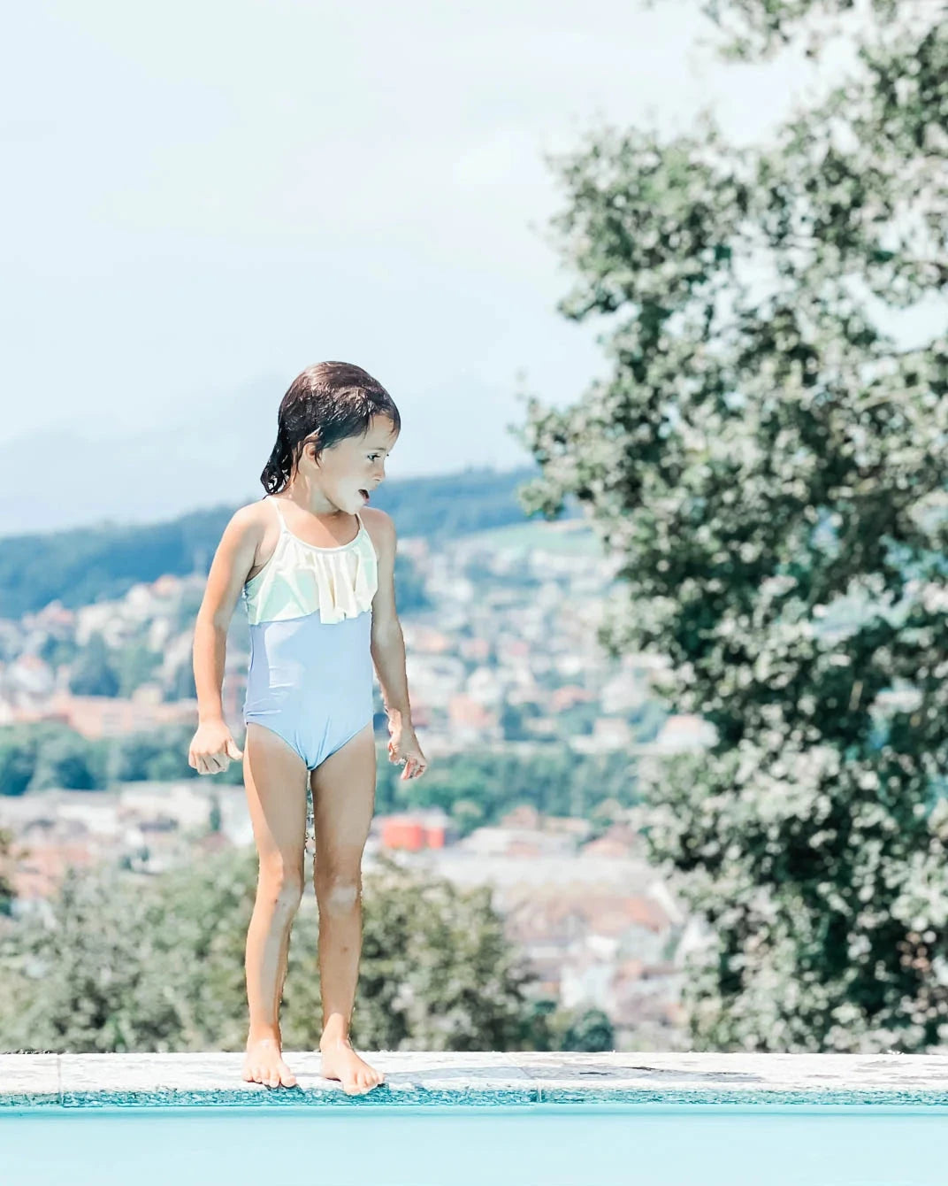 The Ava swimsuit not only offers a charming design, but also practical details for optimal comfort. The adjustable straps ensure a personalized fit and guarantee that the swimsuit stays secure and comfortable even during vigorous activities. It can be worn crossed at the back or with straight straps. A special eye-catcher is the delicate flounce in the chest area, which gives the swimsuit a playful touch.