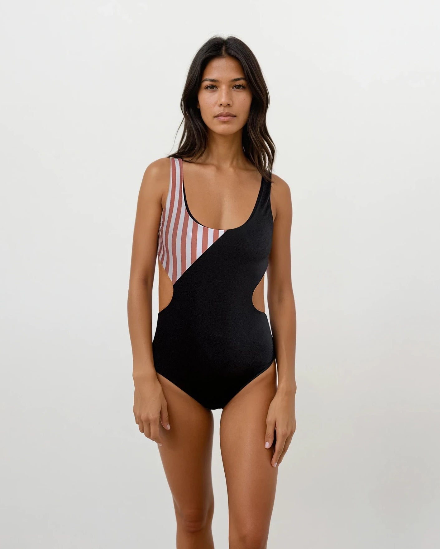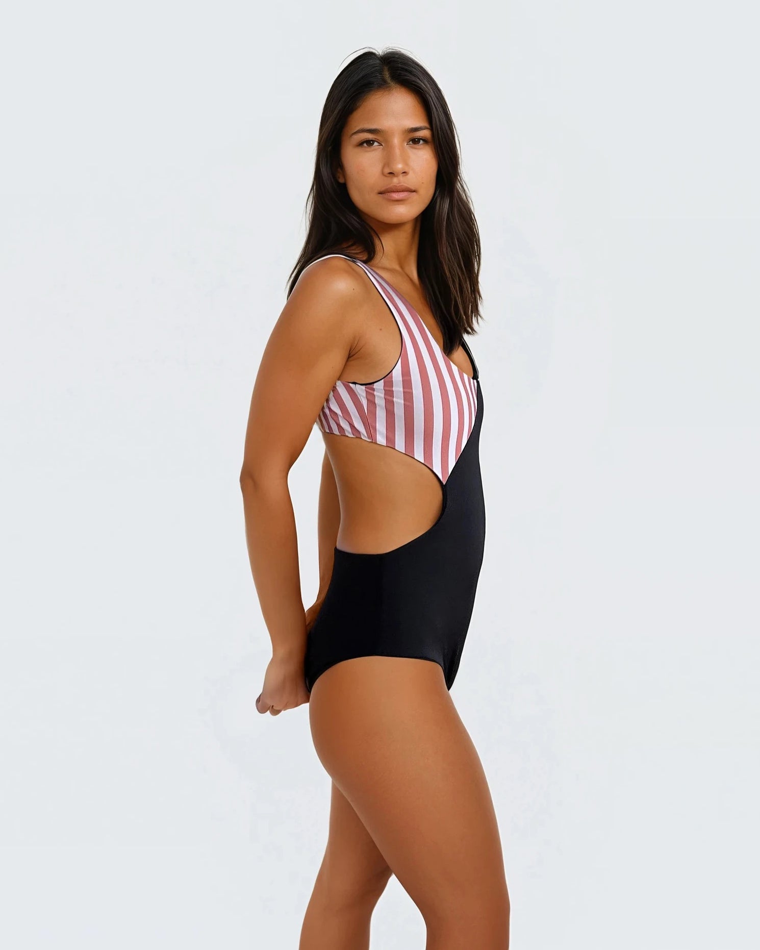 The "Luna" swimsuit combines elegance and functionality into a modern statement piece. With its side cutouts and open back, it adds a playful touch to your swimwear, while the hook closure ensures a secure fit and easy on and off.