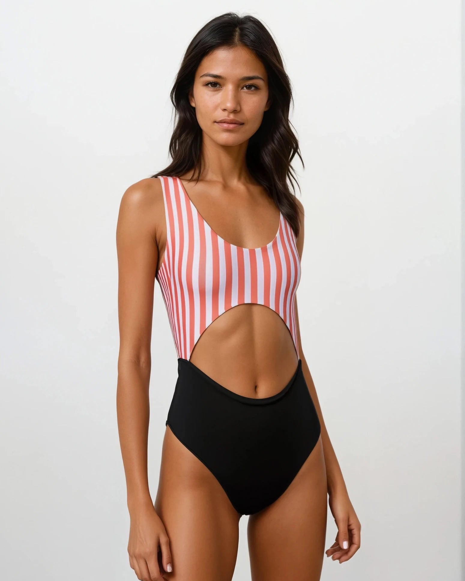 The "Nova" swimsuit combines timeless elegance with modern accents. Its reversible design offers versatile styling options—two looks in one! The sophisticated cutouts on the front and back add a touch of sensuality without compromising comfort.