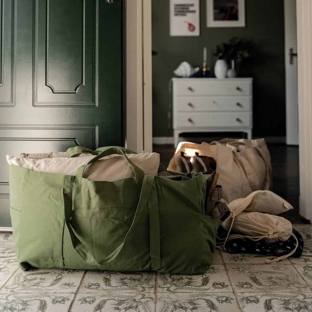 Die grosse Stofftasche von OMOM ist gemacht für Tage, an denen einfach alles mit muss. Ob die Badebekleidung der ganzen Familie, Winterkleider, Wäsche oder Einkäufe – diese Tasche schluckt viel und bleibt dabei angenehm zu tragen. Eine stilvolle, nachhaltige Alternative zur klassischen grossen Plastiktasche des schwedischen Einrichtungshauses IKEA.