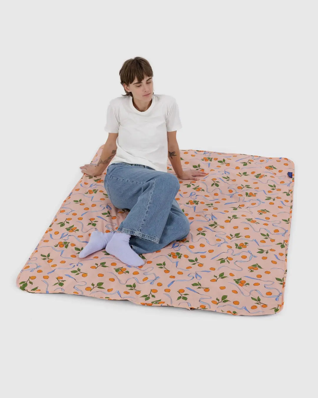 Die gesteppte BAGGU Picknickdecke hat einen praktischem Tragegurt – einfach aufrollen und überallhin mitnehmen. Perfekt für Ausflüge, Strandauszeiten oder entspannte Stunden in der Badi oder im Park.